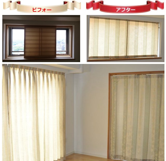 ・カーテン生地をグリーン系にしたため、畳との相性がとても良かったです。