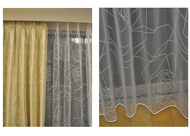 ・シンプルなレースのカーテンの場合「有料ウエイトテープ仕上げ」にするとレースの綺麗さが引き立つと思います。