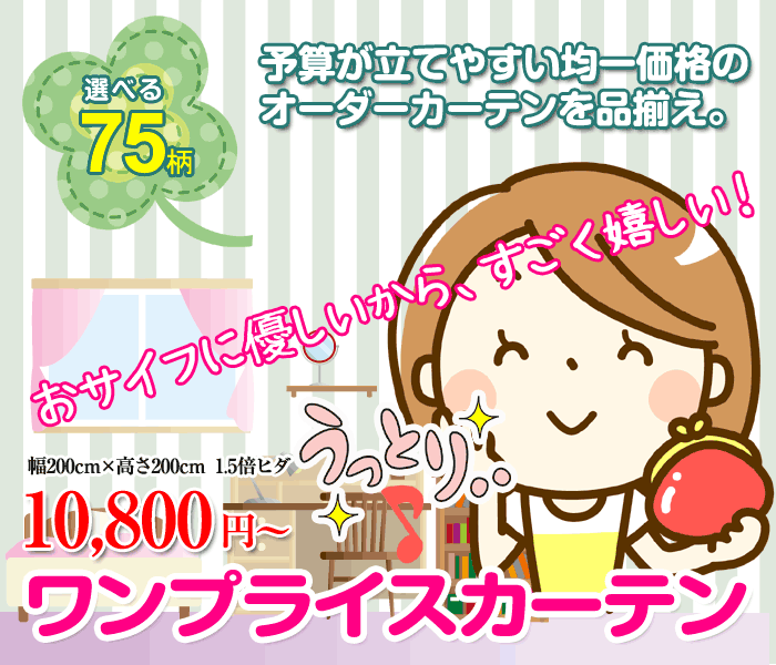 しかも指定のサイズ範囲いないなら、75種類の生地からどれを選んでもすべて同じ価格で購入できますので、各部屋のサイズさえわかれば簡単に新居のカーテン予算を確認することができます。