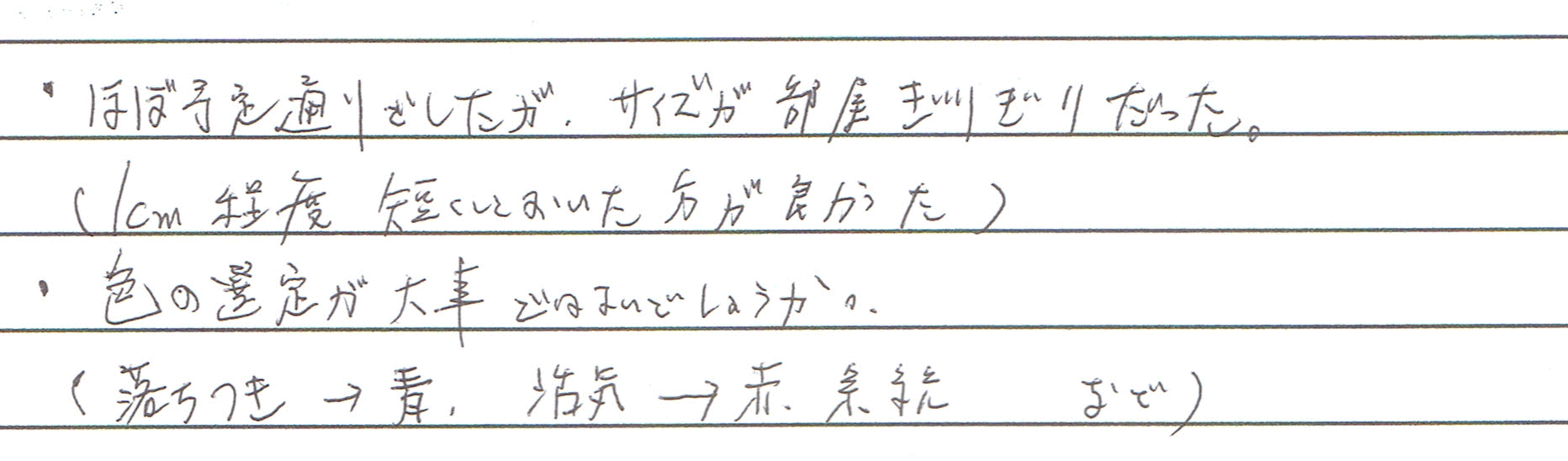 ・ほぼ予定通りでしたが、サイズが部屋ぎりぎりだった。
