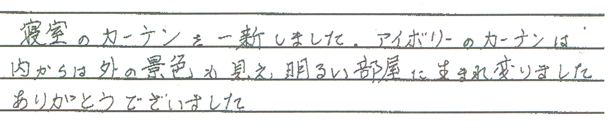 アイボリーのカーテンは内からは外の景色が見え、明るい部屋に生まれ変わりました。