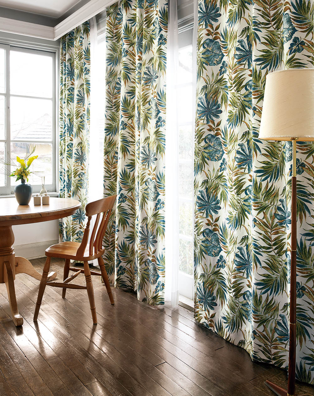 この生地で制作したカーテンには、縦に生地の継ぎ目が入ります。