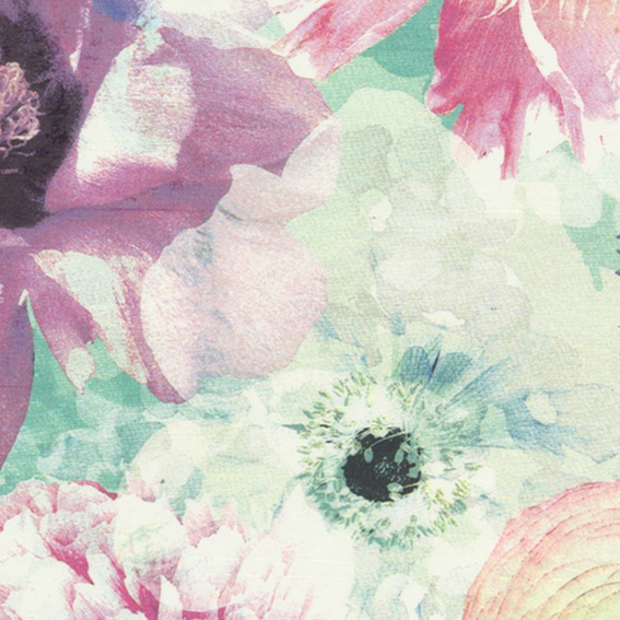 咲き誇る大きな花々を、光沢のある生地にプリントしました。華やかなお部屋を演出します。