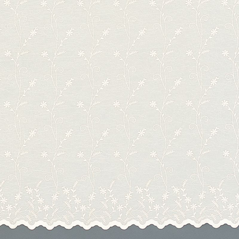 ナチュラルな凸凹感のある生地に、光沢のある糸で小花を刺繍しました。お部屋をふんわりやさしい雰囲気に。