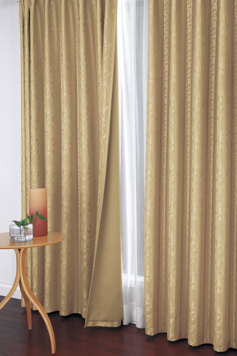 この生地で制作したカーテンには、縦に生地の継ぎ目が入ります。